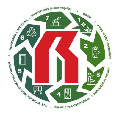 Circulair staat in de eerste plaats voor het behoud van grondstoffen en het (her)gebruiken van bestaande materialen in plaats van nieuwe materialen en onbewerkte grondstoffen. We werken samen met onze partners aan de ontwikkeling en productie van circulaire houtproducten. We doen dit door oude, niet meer productieve bomen van plantages, een tweede leven te geven en deze te verwerken in onze producten.